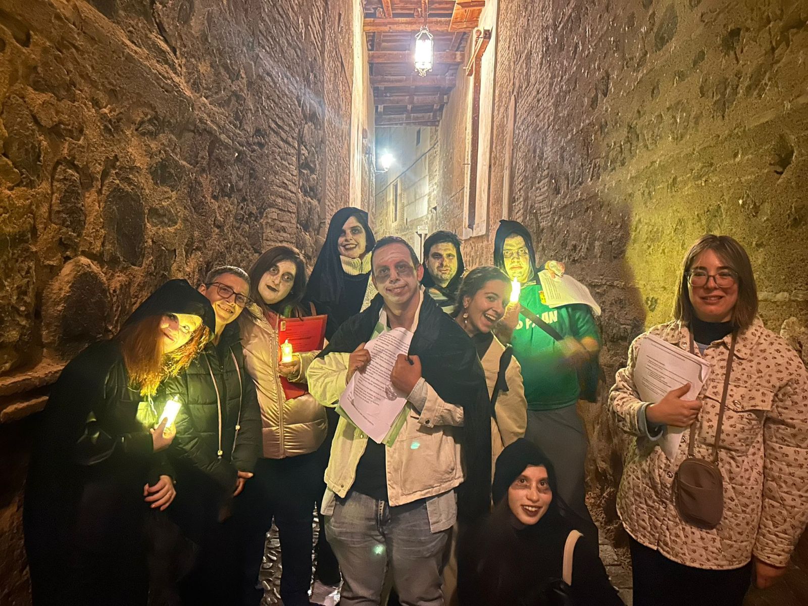 La noche del pasado jueves, víspera de Halloween, Toledo se llenó de misterio y encanto gracias al grupo de monitores de CECAP Joven, que sorprendió a visitantes y vecinos con un pasacalles único y versiones dramatizadas de leyendas locales. La actividad recorrió distintas calles de la ciudad, ofreciendo una experiencia lúdica y cultural que atrajo a numerosos participantes deseosos de vivir esta especial puesta en escena.